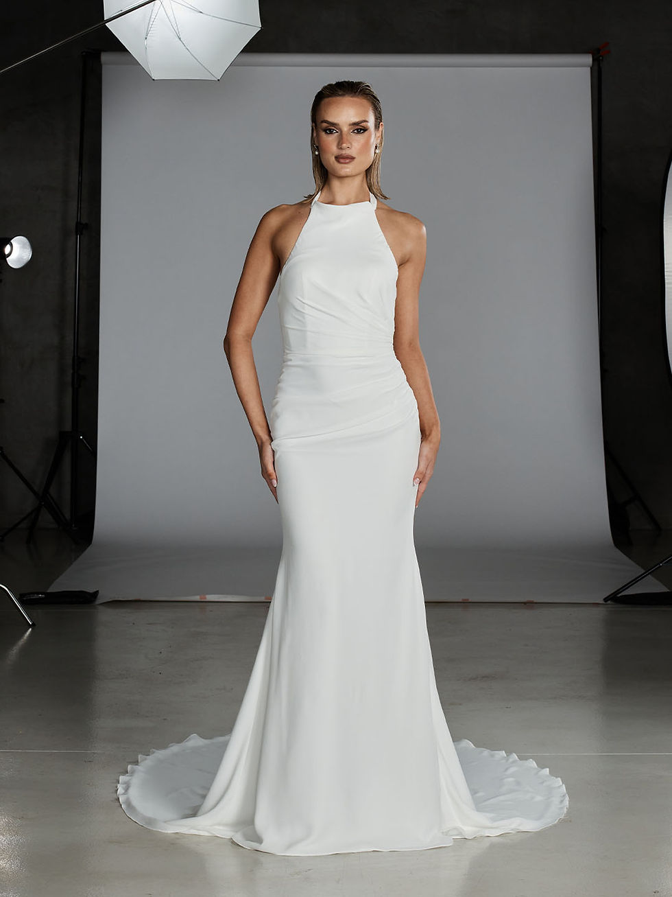 Sleek, contemporary and cutting-edge is our Dean wedding dress, suited for the aisle or the red carpet. This is the gown that will have you feeling your most fashionable for your big day.